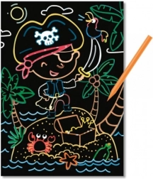 Das Kratzerbild mit Piratenthema begeistert jedes Kind mit seiner farbenfrohen Komponente und kreativen Gestaltung.