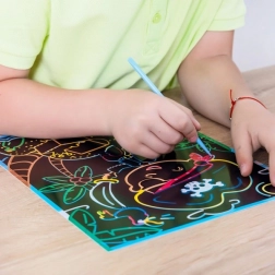 Durch das Kratzen der schwarzen Oberflächenbeschichtung des Bildes entwickeln Kinder feine motorische Fähigkeiten und Geduld.