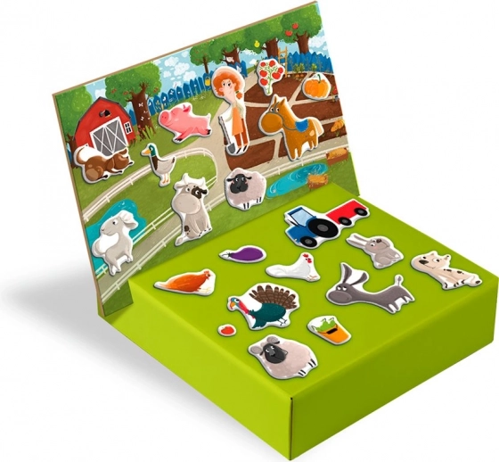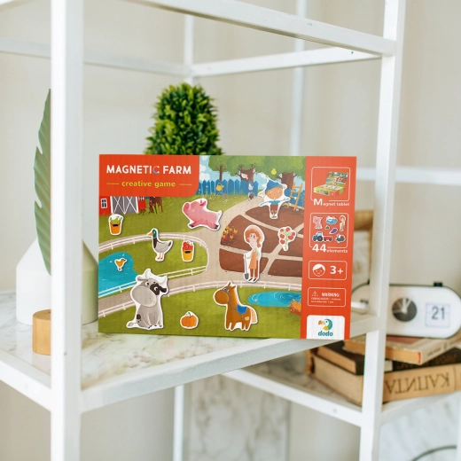 Entdecken Sie die bunte Welt der Haustiere mit dem magnetischen Spiel von Dodo. Das Set enthält eine Magnettafel und 44 magnetische Elemente, mit denen Kinder eigene Geschichten gestalten und dabei Vorstellungskraft, Kreativität und Feinmotorik fördern. Die praktische Box dient als Ständer, sodass das Spiel ideal für zu Hause und unterwegs ist.