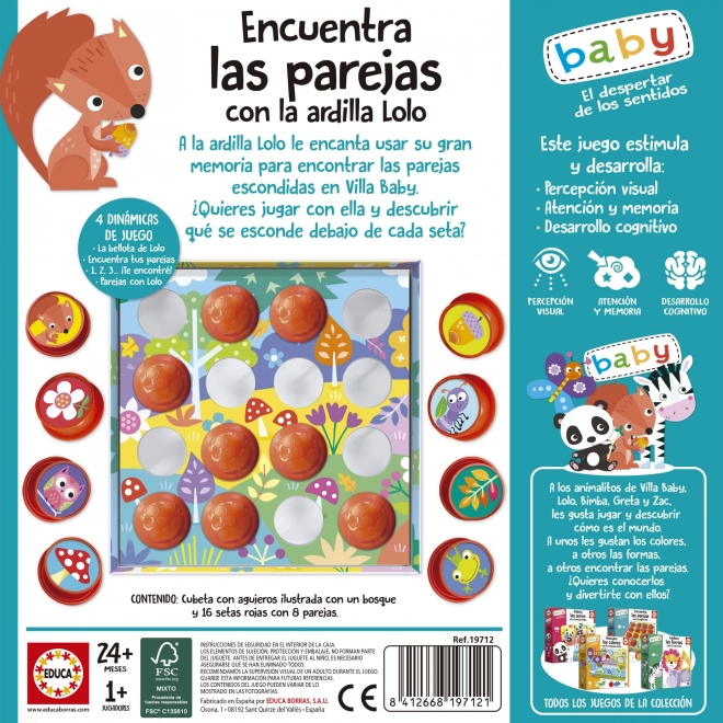 EDUCA Baby Suche die Paare mit Eichhörnchen Lolo wurde entwickelt, um die Neugier und Vorstellungskraft von Kindern zu stimulieren. Kinder lernen, Bilder zu erkennen und durch interaktive Spiele zu paaren.