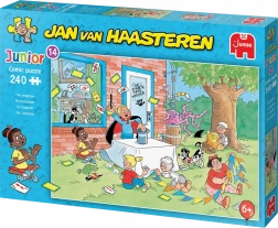 Entdecken Sie das unterhaltsame Familienpuzzle mit einer Illustration des legendären Karikaturisten JAN VAN HAASTEREN. Das Set enthält 240 Teile und ist voller humorvoller Details, die stundenlangen Puzzlespaß garantieren. Freuen Sie sich auf die typische Haifischflosse, mysteriöse Hände und weitere versteckte Motive – alles rund um das Thema Zauberer. Ideal für jüngere Puzzler und gemeinsames Puzzeln mit den Eltern.