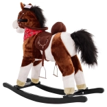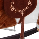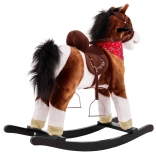 Dieses stilvolle Schaukelpferd in Dunkelbraun verbindet einen klassischen Look mit modernen, interaktiven Funktionen. Der weiche Plüsch fühlt sich angenehm an, während die hölzerne Schaukelbasis Stabilität und eine sanfte Bewegung gewährleistet. Dank Sattel mit Steigbügeln und Zügeln sitzen Kinder sicherer und haben noch mehr Spaß.
