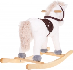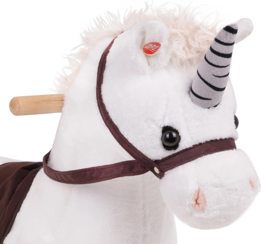 Der Reitsitz ist auf Komfort und Sicherheit ausgelegt, Holzgriffe sorgen für einen sicheren Halt und die Kufen ermöglichen ein sanftes Schaukeln. Das Spiel mit dem Einhorn fördert die Motorik, das Gleichgewicht und die Fantasie der Kinder.