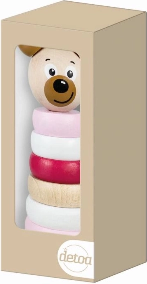 Die Holzpyramide mit Bärenkopf in Pastellfarben ist mehr als nur ein Spielzeug — sie ist ein Werkzeug für die kindliche Entwicklung. Sie ist aus massivem Holz gefertigt, was ihre Haltbarkeit und Langlebigkeit gewährleistet. Sie besteht aus acht Teilen, die Kindern helfen, Farben und Formen zu erkennen. Ihr ergonomisches Design mit runden Formen und abgerundeten Kanten ist an die kleinen Kinderhände angepasst und stimuliert den Tastsinn.