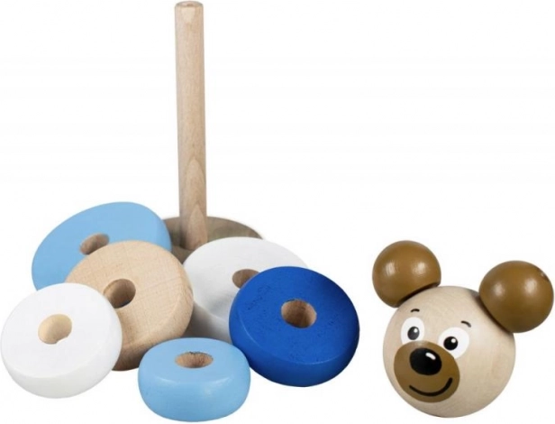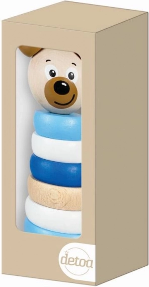 Diese kreative Holzpyramide mit Bärenmotiv ist das ideale Spielzeug für Kinder, die ihre Schlüsselkompetenzen entwickeln möchten. Dank der Farbpalette in Blautönen: