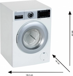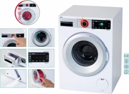 Dank der authentischen Nachbildung und der realistischen Soundeffekte haben Kinder großen Spaß beim Nachspielen des Waschens. Die Waschmaschine verfügt über eine rotierende Trommel, Funktionen zum Befüllen und Ablassen von Wasser und kann batteriebetrieben oder mechanisch per Kurbel genutzt werden.