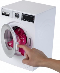 Die Waschmaschine ist mit einer rotierenden Trommel und einer Auswahl an Waschprogrammen mit realistischen Geräuschen ausgestattet und bietet so ein vollwertiges Wasch-Erlebnis für Kinder.