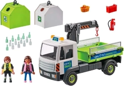 Der große Kran hebt problemlos Container mit Flaschen an und lädt sie auf den Anhänger des LKWs. Dank zahlreicher realistischer Details und Funktionen regen diese Sets aus der PLAYMOBIL City Life Reihe zur Stadtreinigung Kinder ab 4 Jahren dazu an, durch Spiel etwas über Umweltschutz zu lernen.