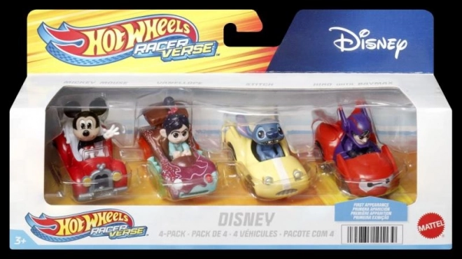 Entdecken Sie die Welt von Hot Wheels RacerVerse: vier stylische Metallautos im Maßstab 1:64, jedes mit einer fest montierten Figur, inspiriert von bekannten Film-, Serien- oder Comichelden. Die Modelle bieten authentische Details und fahren sowohl auf Hot Wheels Strecken als auch abseits davon reibungslos, sodass die Rennen ohne Einschränkungen weitergehen.