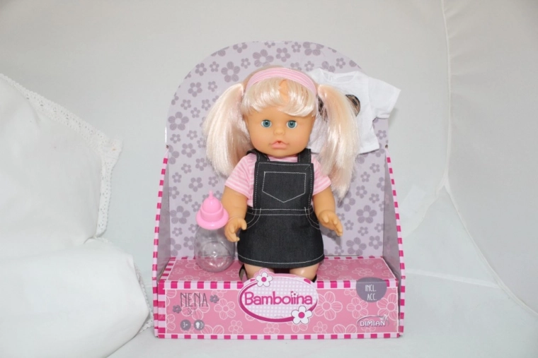 Bambolina Puppe Nena 36 cm mit Fläschchen und Ersatz-T-Shirt