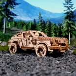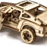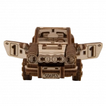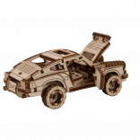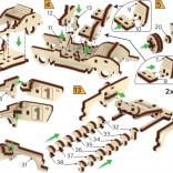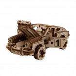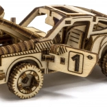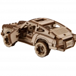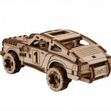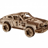 Präzise ausgeschnittene Teile aus Birkensperrholz greifen exakt ineinander. Der Aufbau dauert etwa 40 Minuten und gelingt dank leichter Schwierigkeitsstufe wirklich jedem. Das vom Motorsport inspirierte Modell begeistert Schulkinder ebenso wie erwachsene Fans.