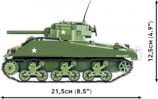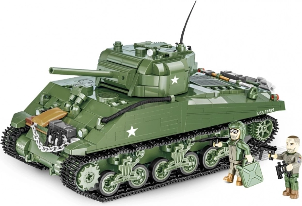 Das Bausteinmodell des Sherman ist detailliert ausgearbeitet und enthält verschiedene Zubehörteile des ursprünglichen Panzers. Besonders beachtenswert ist die hervorragend gestaltete Figur des Panzerkommandanten. Auf dem Panzer befindet sich auch eine Tafel mit einem gedruckten Namen.