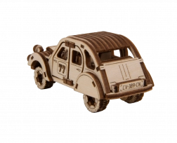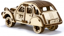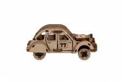 Dieses Modell eines Rallyewagens bietet eine fesselnde Kombination aus kreativem Spaß und eleganter Wohnraumdekoration. Die Teile aus erstklassigem Birkensperrholz greifen präzise ineinander – ohne Klebstoff und Schrauben – und ergeben ein eindrucksvolles Retro-Automobil mit vielen feinen Details.