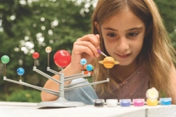 Kinder setzen ein Planetenmodell zusammen und gestalten es mit den beiliegenden Farben. Ein spielerischer Weg, Reihenfolge und Größen der Planeten sowie Grundlagen der Astronomie zu verstehen.
