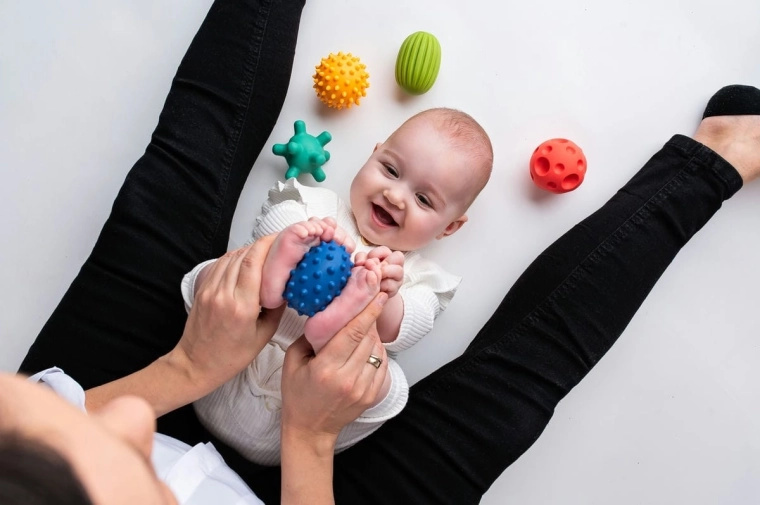 Eine sanfte Massage mit den Bällen löst Muskelverspannungen und hilft dem Kind, vor dem Einschlafen zur Ruhe zu kommen. Ideal für ein regelmäßiges abendliches Ritual.