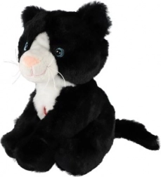Diese flauschige schwarz-weiße Plüschkatze ist ein großartiger Begleiter für kleine und größere Kinder. Dank der weichen und angenehmen Oberfläche wird sie zum Lieblingskuscheltier zum Einschlafen und für das tägliche Spielen. Durch Drücken des Bauches miaut die Katze wie eine echte, was die kindliche Fantasie und die Sinneswahrnehmung fördert.