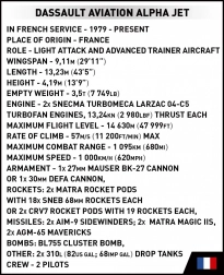 Alpha Jet ist ein leichter Angriffs- und fortschrittlicher Schulungsjet, der durch die deutsch-französische Zusammenarbeit entstand und in den 1970er Jahren in den Dienst gestellt wurde. Dieses Steinmodell wurde unter der Lizenz des französischen Militärflugzeugherstellers Dassault Aviation entworfen und ergänzt die Armed Forces Modellkollektion im Maßstab 1:48.