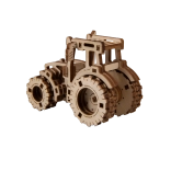 Laser-geschnittene Elemente aus Sperrholz verleihen dem Traktor mit Zahnrädern und Reifen ein realistisches Aussehen.