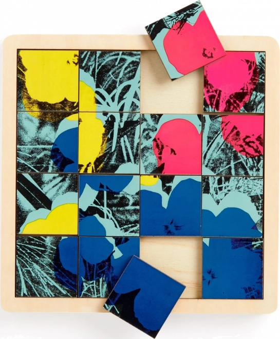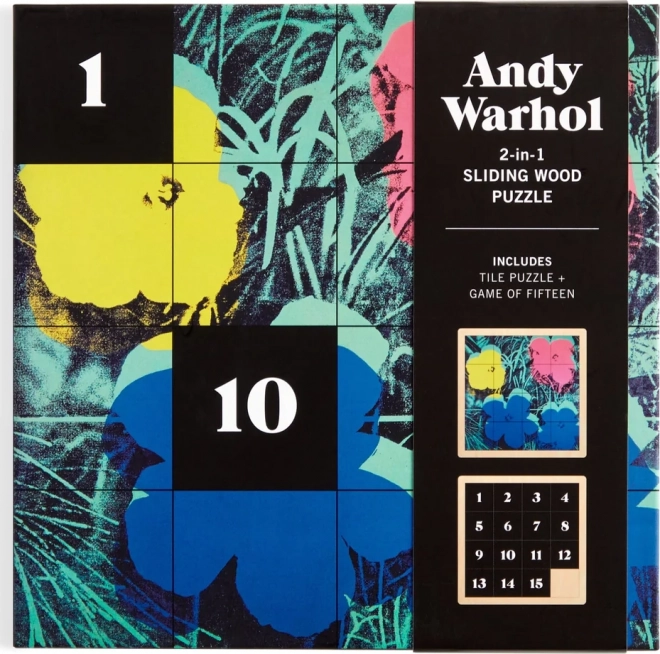 Schiebepuzzle mit Blumenmotiv von Andy Warhol bietet zwei Spielweisen:
