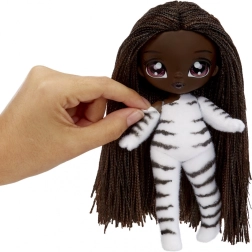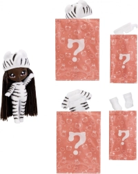 Erlebe eine neue Art der Puppen-Enthüllung mit der NA! NA! NA! Fuzzy Surprise Kollektion. Jede 17-cm-Puppe hat einen zarten beflockten Körper, der sich durch Abwischen mit einem feuchten Tuch zeigt und so ihren einzigartigen Look, ausdrucksstarke Gesichtsdrucke und modische Accessoires offenbart. Zebra Girl besticht durch einen schwarz-weißen Animal-Style, eine abnehmbare Mütze mit Ohren und markante Brille.