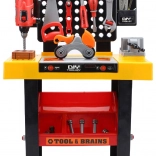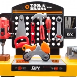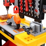 Bohrmaschine, Säge, Hammer, Schraubendreher, Schlüssel, Schrauben, Muttern und Verbinder – alles, was Kinder für kreatives Bauen und Rollenspiele brauchen.