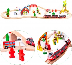 Diese wunderschöne Holzeisenbahn der Marke Ecotoys ist für Kinder ab drei Jahren geeignet und bietet Jungen und Mädchen stundenlangen Spielspaß. Mit einer sicheren Konstruktion ohne scharfe Kanten, einschließlich batteriebetriebener Züge und vielfältigen Figuren, bietet das Holzeisenbahn-Set eine äußerst kreative Umgebung zur Förderung der Vorstellungskraft und Feinmotorik der Kinder.