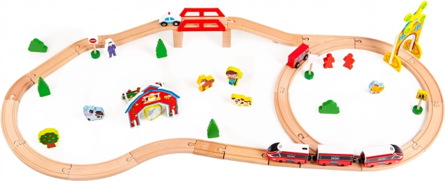 Dank verschiedener Komponenten wie Verkehrszeichen, Brücke, Bauernhof und Windmühle kann jeder Tag mit dieser Eisenbahn anders sein. Die Möglichkeit, die Schienen beliebig zu verbinden, ermöglicht es Kindern, eine Vielzahl von Strecken und Szenarien zu erstellen, was großen Spaß für mehrere Kinder gleichzeitig bietet.