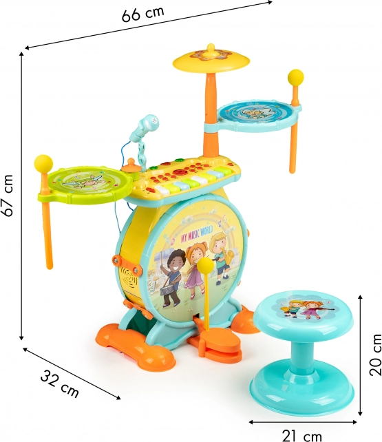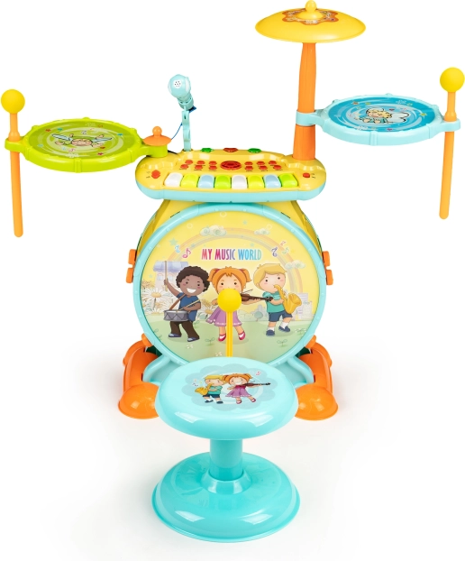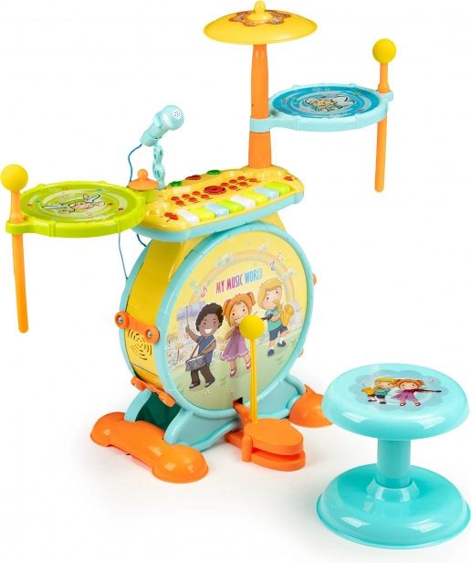 Tauchen Sie mit diesem farbenfrohen Kinder-Set aus Schlagzeug und Keyboard in die Welt der Musik ein – es bietet jede Menge Spaß und fördert die Kreativität Ihrer Kinder.