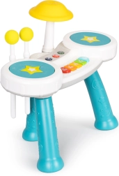 Dank der zwei mitgelieferten Schlägel kann das Kind wie auf einem echten Schlagzeug spielen und Modi wechseln.