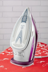 Die Keramiksohle sorgt für eine gleichmäßige Wärmeverteilung und gleitet sanft, was das Bügeln erleichtert.