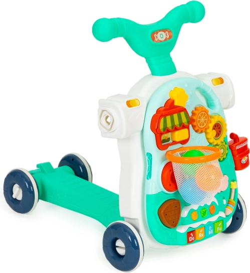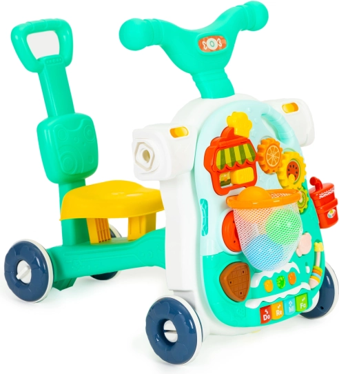 Wenn das Kind älter und selbstständiger ist, kann das Spielzeug in einen Roller umgewandelt werden. Es verfügt über bequeme Lenker und robuste Räder, ermöglicht längere Ausflüge in der Natur und trainiert gleichzeitig Kondition und Gleichgewicht.