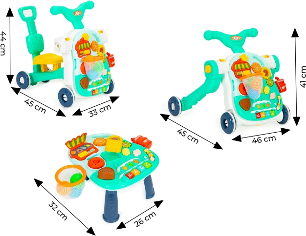 Unser 4-in-1-Spielzeug besteht aus robustem Material, das Langlebigkeit und Sicherheit beim Spielen gewährleistet. Ideal für Eltern, die ein Spielzeug suchen, das mit dem Kind mitwächst und seine ganzheitliche Entwicklung unterstützt.