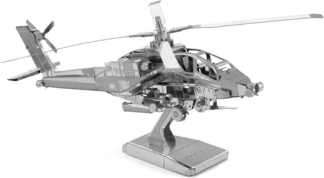 Kreieren Sie Ihr eigenes 3D-Modell eines Hubschraubers AH-64 Apache, das eine großartige Dekoration für Zuhause, Büro oder Klassenzimmer ist. Metal Earth 3D-Puzzle ist bekannt für seine Präzision und Detailgenauigkeit dank Lasergravur. Aus Stahlschichten mit den Maßen 11 x 11 cm bauen Sie eine faszinierende Miniatur des berühmten amerikanischen Kampfhubschraubers, der seit dem Ende des Kalten Krieges bis in die Gegenwart verwendet wird.
