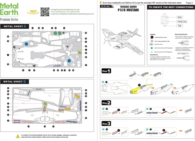 Das Set enthält zwei Stahlbleche, eine Pinzette und eine Montageanleitung. Das fertige Modell hat die Maße ca. 15,7 x 19,3 x 7,9 cm. Empfohlen für ein Alter ab 14 Jahren.