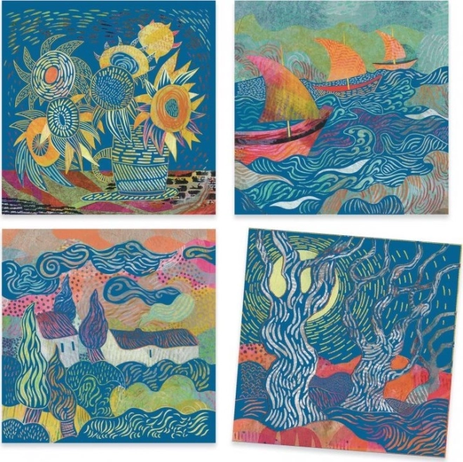 Design-Set mit beliebten Kratzbildern, inspiriert vom berühmten Künstler Vincent van Gogh.