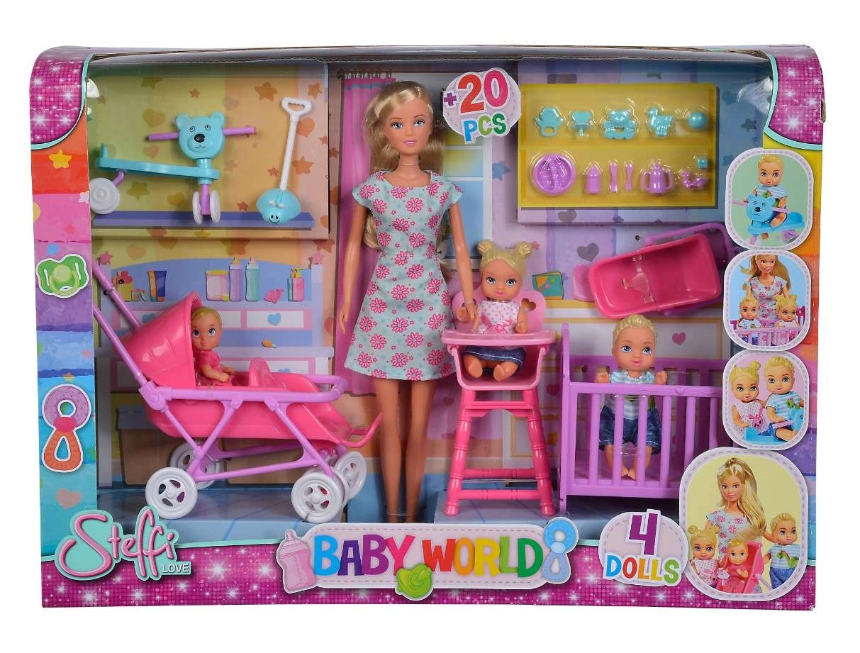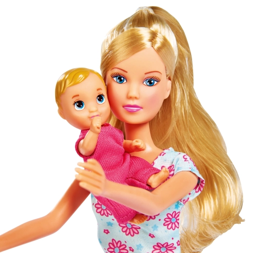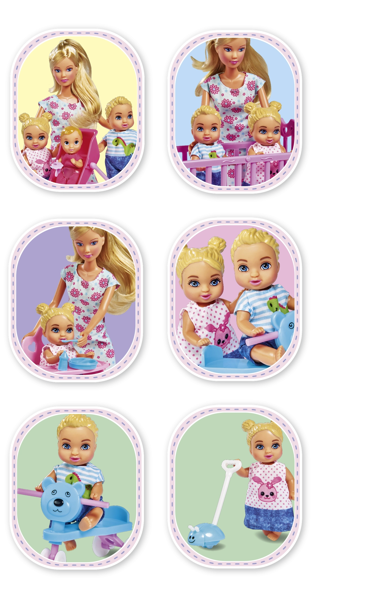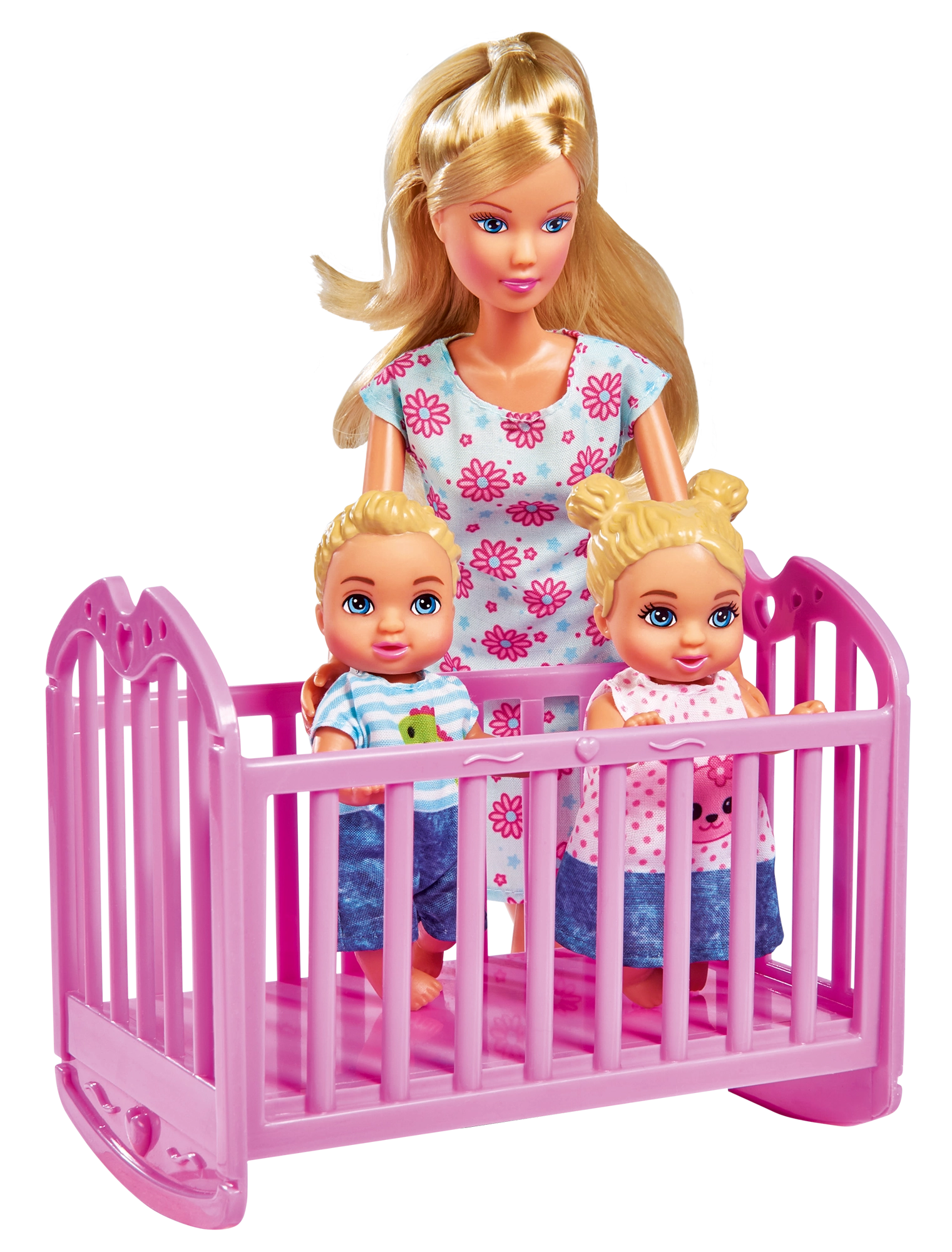Die beliebte Puppe STEFFI präsentiert sich als fürsorgliche Mama mit drei Babys und umfangreicher Ausstattung fürs Kinderzimmer. Dank des 2-in-1-Kinderwagens (Babywanne + Sportvariante), Bettchens, Hochstuhls und praktischer Kleinteile spielen Kinder alle Alltagssituationen – vom Füttern über das Einschlafen bis zu Ausflügen.