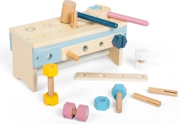 Cleveres und robustes Kinder-Werkzeugset, das sich mit einer Drehung in eine Werkbank verwandelt. Enthält Hammer, Schraubenschlüssel, Schraubendreher, Lineal, Schrauben und Muttern. Dank der kompakten Maße und des integrierten Griffs ideal für unterwegs. Hergestellt aus FSC®-zertifiziertem Holz, fördert Feinmotorik, Kreativität und soziale Fähigkeiten.