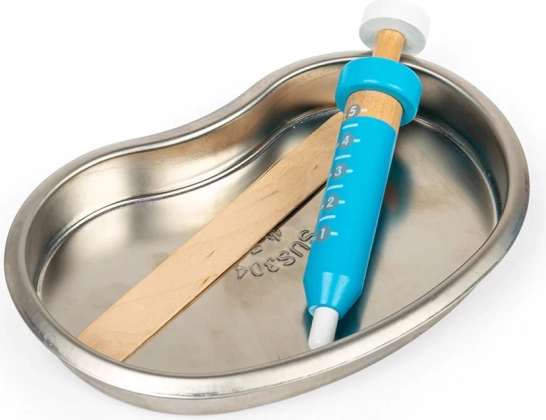 Zahnbürste, Zahnpasta, Spritze, Otoskop, Pinzette und Mundschutz – alles für ein authentisches und lehrreiches Zahnarzt-Rollenspiel.