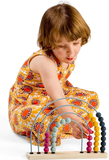 Das Verschieben der Perlen entlang der Metallbögen verbessert den Griff, die Auge-Hand-Koordination und die Geduld der Kinder.