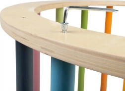 Dank der robusten Verarbeitung aus FSC®-zertifiziertem Holz bietet der Bogen einen sicheren Rahmen für die Förderung von Grobmotorik, Gleichgewicht und Grundkraft. Die kompakten Maße sparen Platz und machen den Bogen zu einem praktischen Zusatz für die Spielecke und auch für Bewegungstraining zu Hause. Für den Innenbereich vorgesehen, Montage durch einen Erwachsenen.