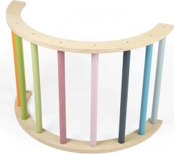 Der Montessori-Bogen von BIGJIGS TOYS ist ein vielseitiges Spielelement, das Kinder zu natürlicher Bewegung und Entdeckung anregt. Er kann als Klettergerüst, Balancehilfe, Basis für ein Deckenversteck oder als Hängeständer für Rasseln und Stofftiere genutzt werden. Pastellfarbene Sprossen laden zur Aktivität ein und ergänzen zugleich stilvoll die Einrichtung des Kinderzimmers.