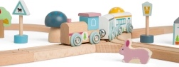 Das Produkt wird ethisch aus nachhaltigem Holz mit FSC®-Zertifizierung hergestellt, was garantiert, dass das Material aus schonend bewirtschafteten Wäldern stammt. Das Spielzeug ist vollständig mit Eisenbahnsystemen anderer Hersteller kompatibel und ermöglicht so eine Erweiterung und Verbesserung des Spielerlebnisses.