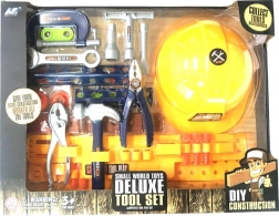 Ermöglichen Sie Ihren Kindern die großartige Gelegenheit, zu kleinen Bauherren zu werden, mit diesem Deluxe Werkzeugset. Das Set enthält alle notwendigen Werkzeuge für realistische Rollenspiele als Handwerker oder Bauarbeiter.