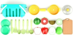 Genießen Sie stundenlangen Spaß mit dem Set aus Schneideobst und -gemüse in einem praktischen Korb. Enthält 17 verschiedene Teile für kreatives Spielen.