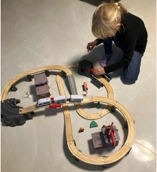Holzeisenbahn mit batteriebetriebener Lokomotive, 80 Teile
