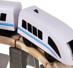 Holzeisenbahn mit batteriebetriebenen Zügen