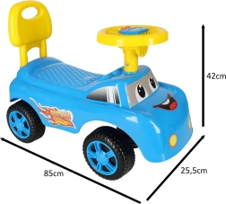 Der niedliche blaue Rutscher mit lächelnder Front unterstützt Motorik, Gleichgewicht und Sicherheit bei den ersten Fahrten. Dank des geringen Gewichts lässt er sich leicht tragen und vom Kind mühelos steuern. Die Hupe am Lenkrad sorgt für realistische Auto-Erlebnisse.