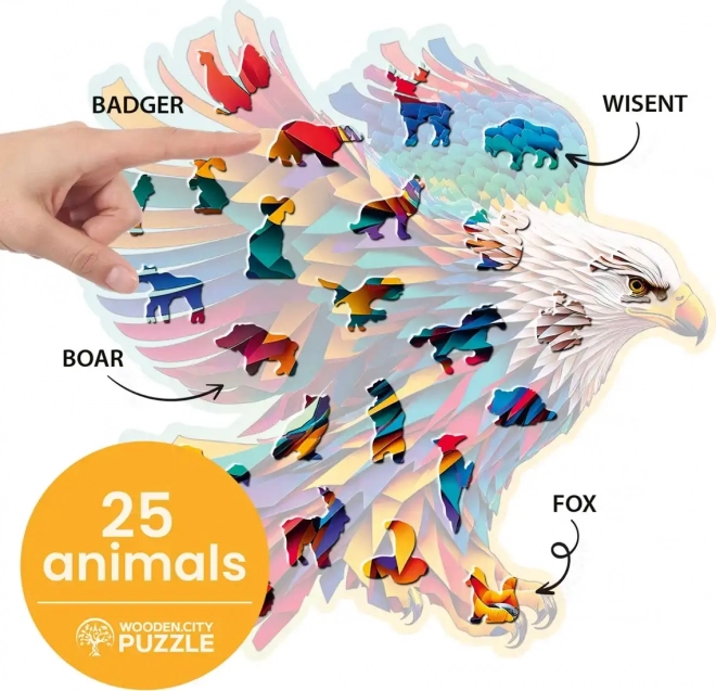 Entdecken Sie den Zauber des Puzzelns mit dem Holzpuzzle Scharfer Adler von WOODEN CITY. Dieses Produkt wird Sie mit seinen speziell geformten Stücken begeistern, die ein unvergessliches Tierformen-Mosaik bilden. Laserhervorhebungen und freistehende Figuren bringen neue Herausforderungen und Freude am Puzzeln.