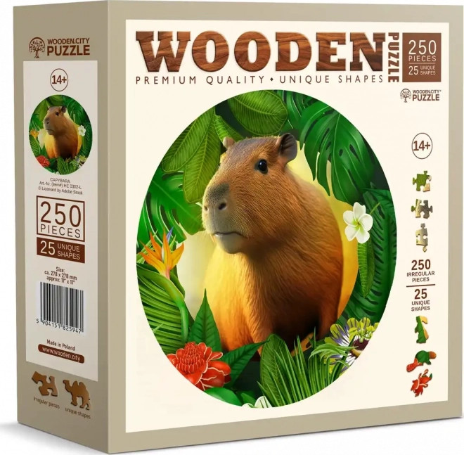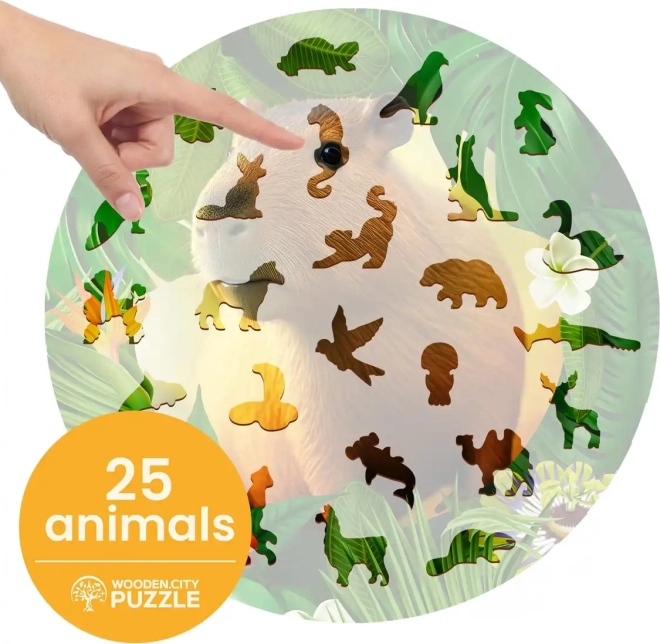 Das Holzpuzzle WOODEN CITY mit Capybara-Motiv bietet ein einzigartiges Puzzle-Erlebnis. Speziell geformte Teile, von denen einige Tierformen haben, begeistern jeden Liebhaber origineller Puzzles. Durch Laser hervorgehobene Details verleihen dem Bild Tiefe und die einzelnen Formteile können auch allein als kleine Figuren stehen.