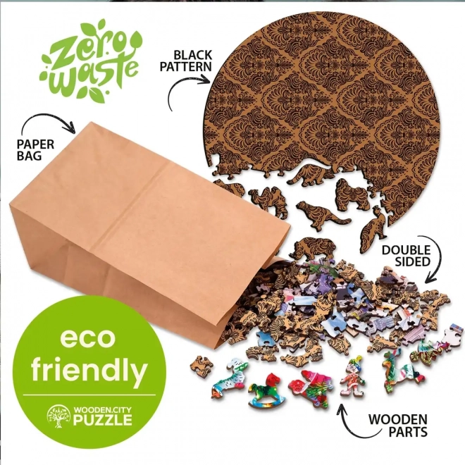 Entdecken Sie die einzigartige Welt der Puzzles von der Marke WOODEN CITY. Dieses Holzpuzzle bietet weit mehr als nur Spaß. Spezielle Formung der Teile in Tierform sorgt dafür, dass jedes Stück ein kleines Kunstwerk ist. Dank der laserbetonten Details jedes Teils ist das Puzzeln nicht nur schwieriger, sondern auch ästhetischer. Ein weiterer Vorteil ist der ökologische Ansatz, sodass Sie in der Verpackung kein Plastik finden werden, nur Papier.